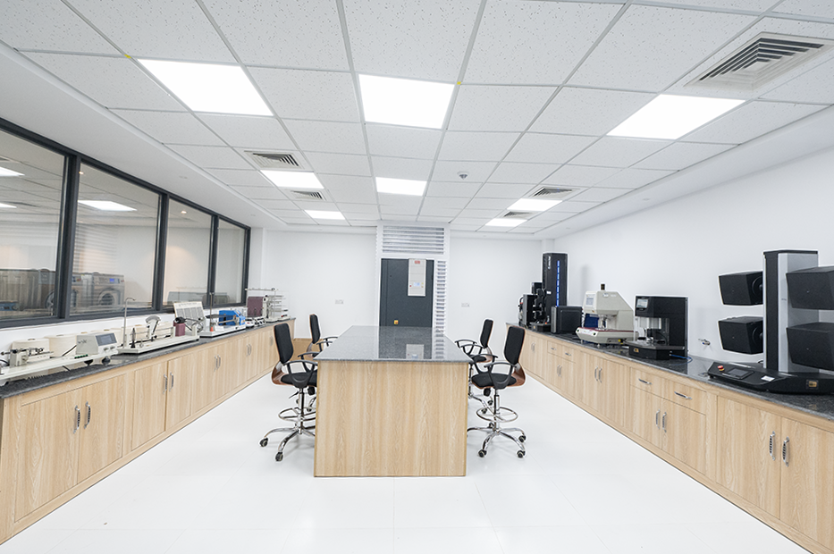 We take immense pride in the superior quality of garments we produce; hence to maintain it, our lab conducts in-depth tests and inspections on raw materials, process materials, and finished garments while maintaining international safety standards. Supporting advancement, our lab helps with producing new textures and articles of garment innovations, working together with design and production teams to continuously test and refine materials.